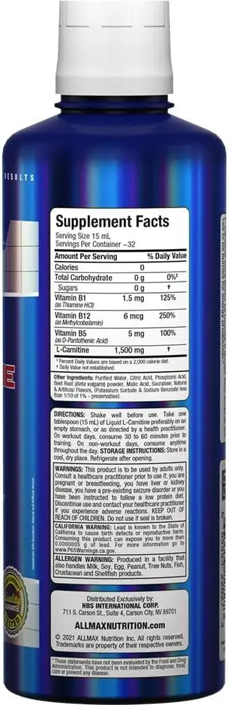 ALLMAX Liquid L-Carnitine 1500 + B5 – ბუნებრივი ენერგია, მეტი გამძლეობა და სპორტული მხარდაჭერა სტიმულატორების გარეშე