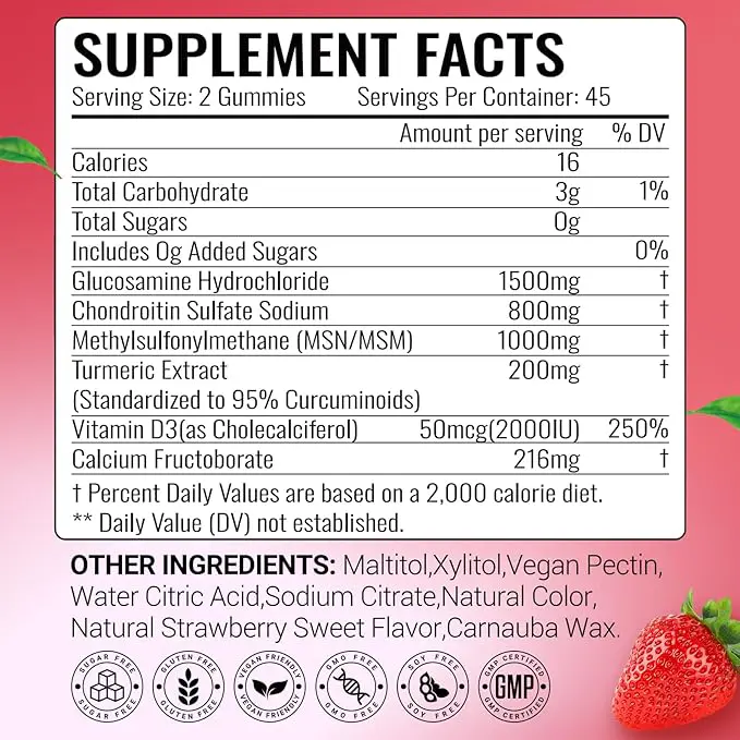 Natural joint support gummies – Glucosamine, MSM, Calcium, Turmeric & Vitamin D3 for pain relief, flexibility, and cartilage health. 45-day vegan formula