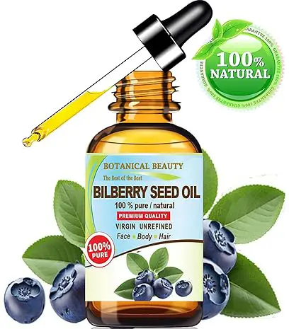 Bilberry Seed Oil – 100% სუფთა ზეთი, მდიდარია ომეგა-3 და 6, ვიტამინები A & C, კანის დამატენიანებელი და ანტიჰელყილი ყველა ტიპისთვის.