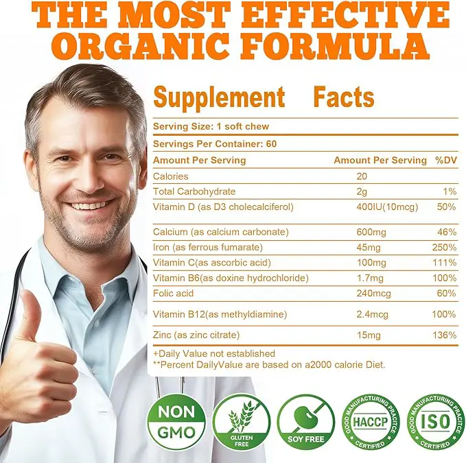 🍊 Irresistible Iron Supplements – Daily Iron + Vitamin C Chewables