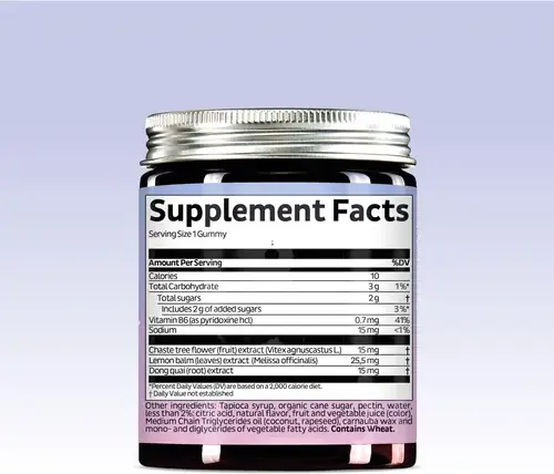 • ✔ შეიცავს Chasteberry, Lemon Balm & Vitamin B6