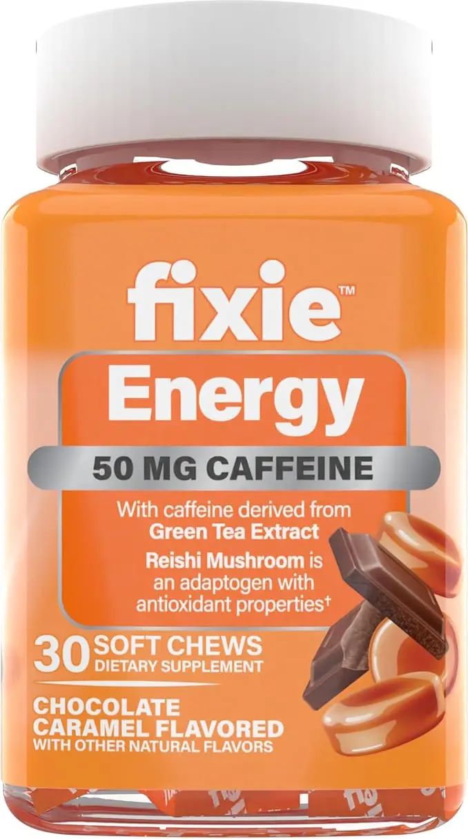 Fixie Energy Chocolate Caramel Flavored 30 soft chews შეიცავს 50 მგ კოფეინს და 100 მგ Reishi სოკოს, მხარს უჭერს ენერგიას, სიფხიზლეს და ყოველდღიურ აქტიურობას.