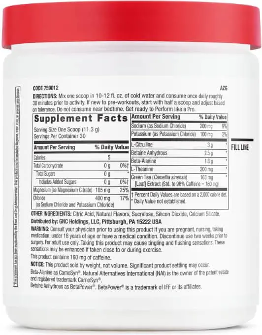 ⚡ GNC Pro Performance Pre-Workout – Blue Raspberry, 30 პორცია
