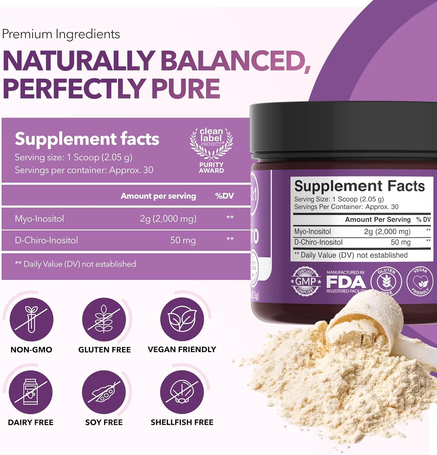 • ✔ Inositol ხელს უწყობს ემოციური სტაბილურობის შენარჩუნებას და სტრესის შემცირებას