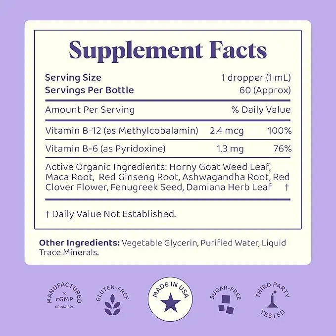 • ✔ შეიცავს Horny Goat Weed, Maca, Liquid Fenugreek, Red Ginseng და B ვიტამინებს