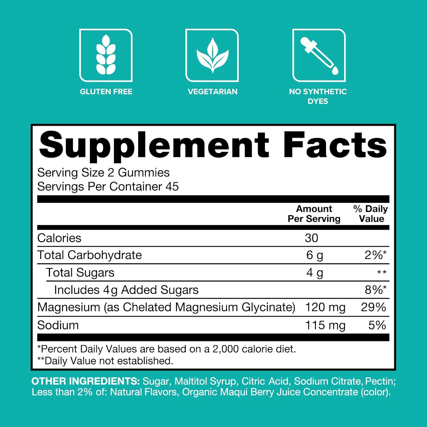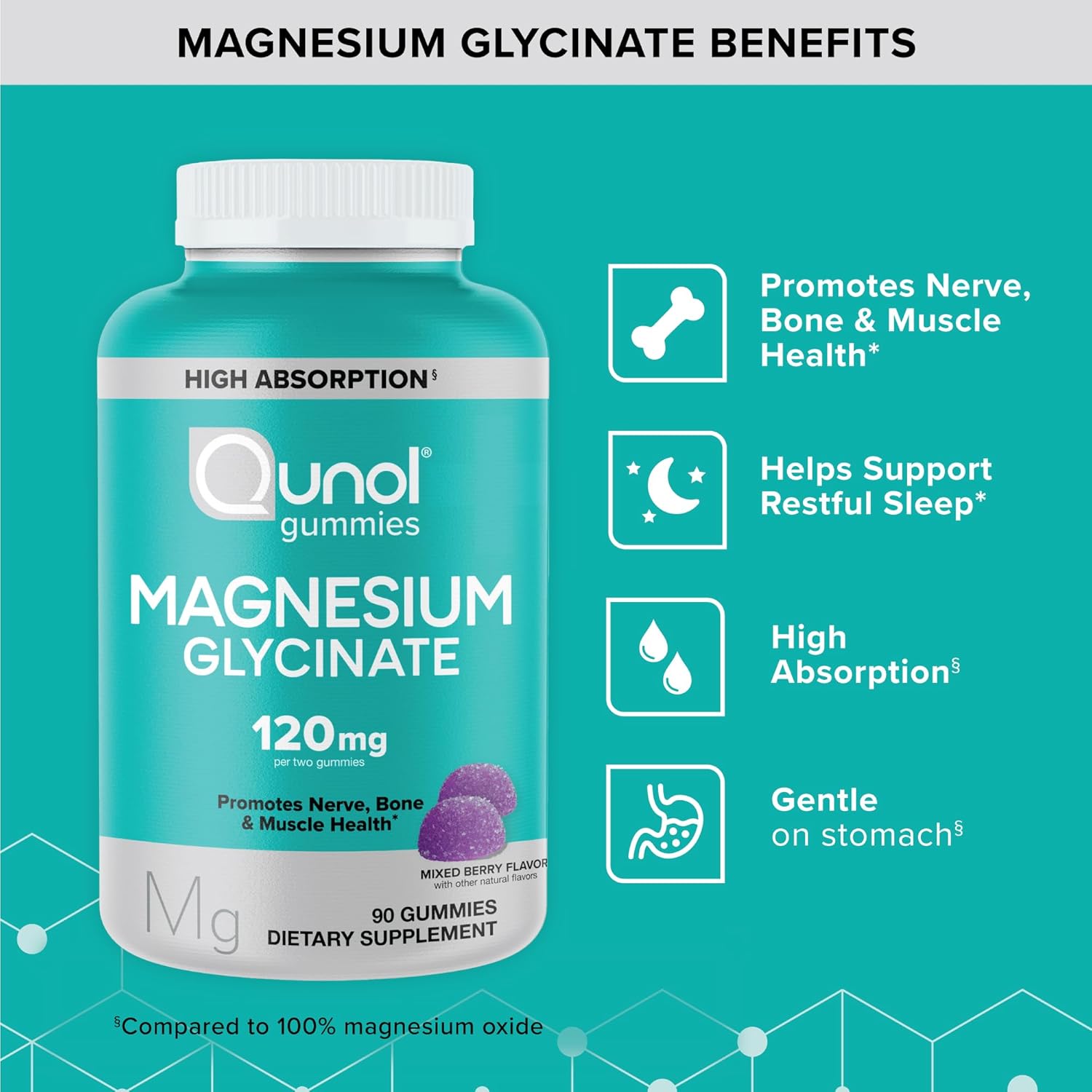 მაგნიუმის გლიცინატი 120 მგ ჟელიბონები Qunal Magnesium Glycinate 90Gummies
