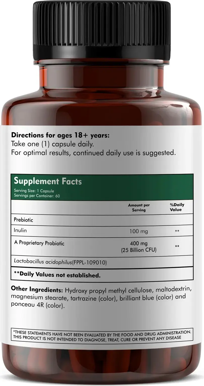 • ✔ თითო კაფსულა შეიცავს 25 მილიარდი Lactobacillus acidophilus