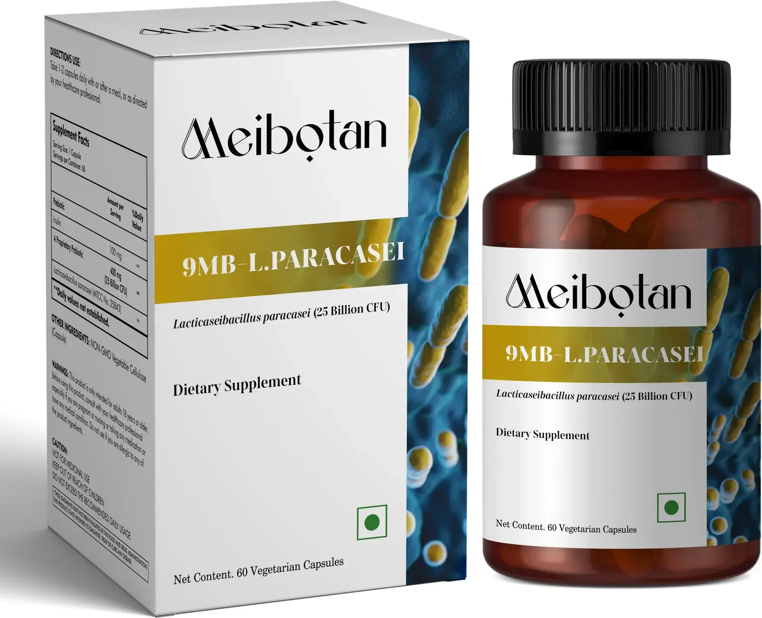 „Meibotan 9mb-L.Paracasei 60 Caps – 25 მილიარდი L.Paracasei თითო კაფსულაში. მხარს უჭერს მონელებას, ნაწლავების ჯანმრთელობას, ვეგან Friendly და ყოველდღიური გამოყენებისთვის.“