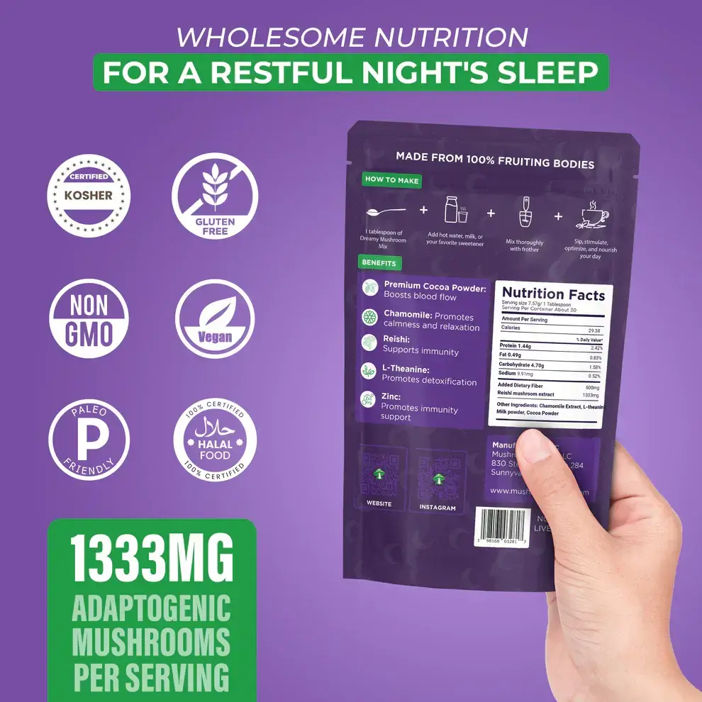 • ✔ 30 პორცია მდიდარი Mushroom Cocoa-სთვის, იდეალურია მშვიდი ღამეებისთვის