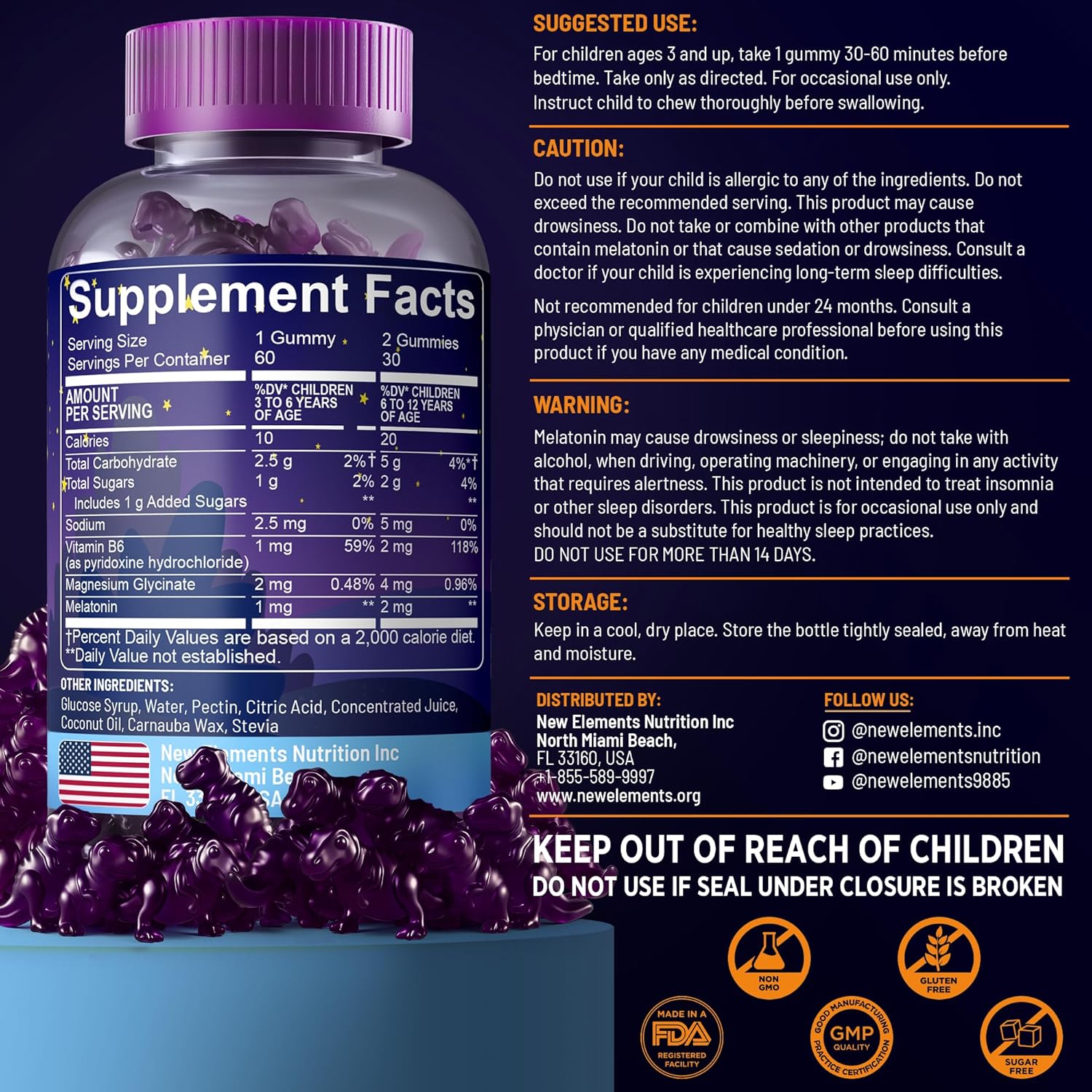 Home / საკვები დანამატები / New Elements Dino Snooze Melatonin Gummies ბავშვებისთვის შექმნილი ძილის მოსაწესრიგებელი 60 ჟელიბონი