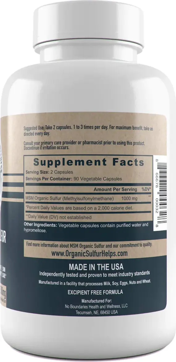 No Boundaries Health And Wellness MSM Organic Sulfur Back