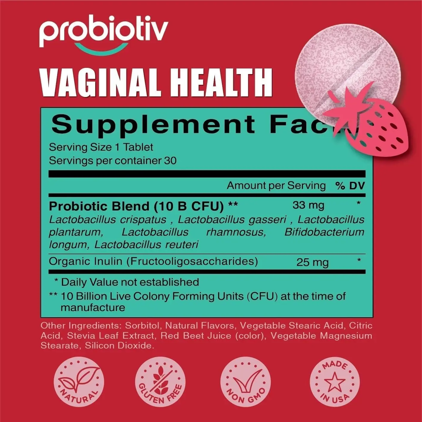 - ✔ პრობიოტიკებისა და პრებიოტიკების ნაზავი მხარს უჭერს ბუნებრივ ვაგინალურ pH-ს
