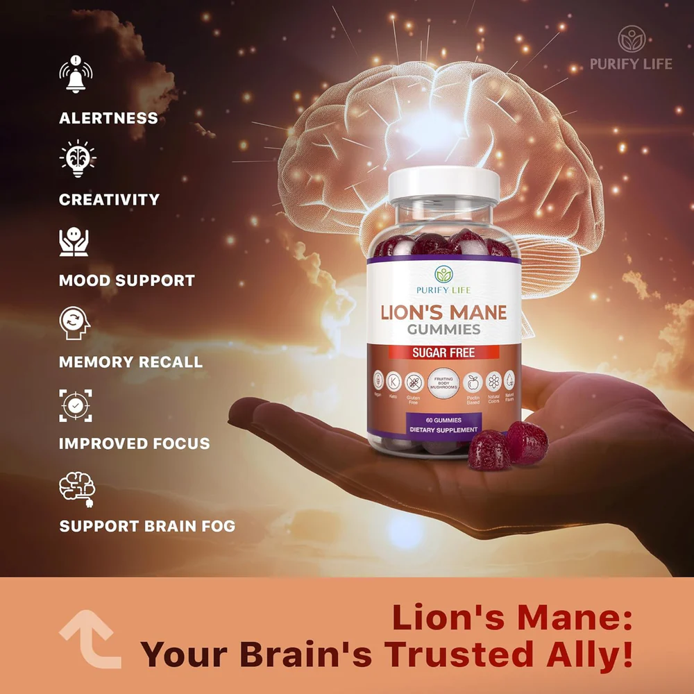 🧠 Purify Life Lion’s Mane Gummies – 60 გუმი თვეში, ყოველდღიური მხარდაჭერა გონებისა და იმუნიტეტისთვის, შაქრის გარეშე და გემრიელი!