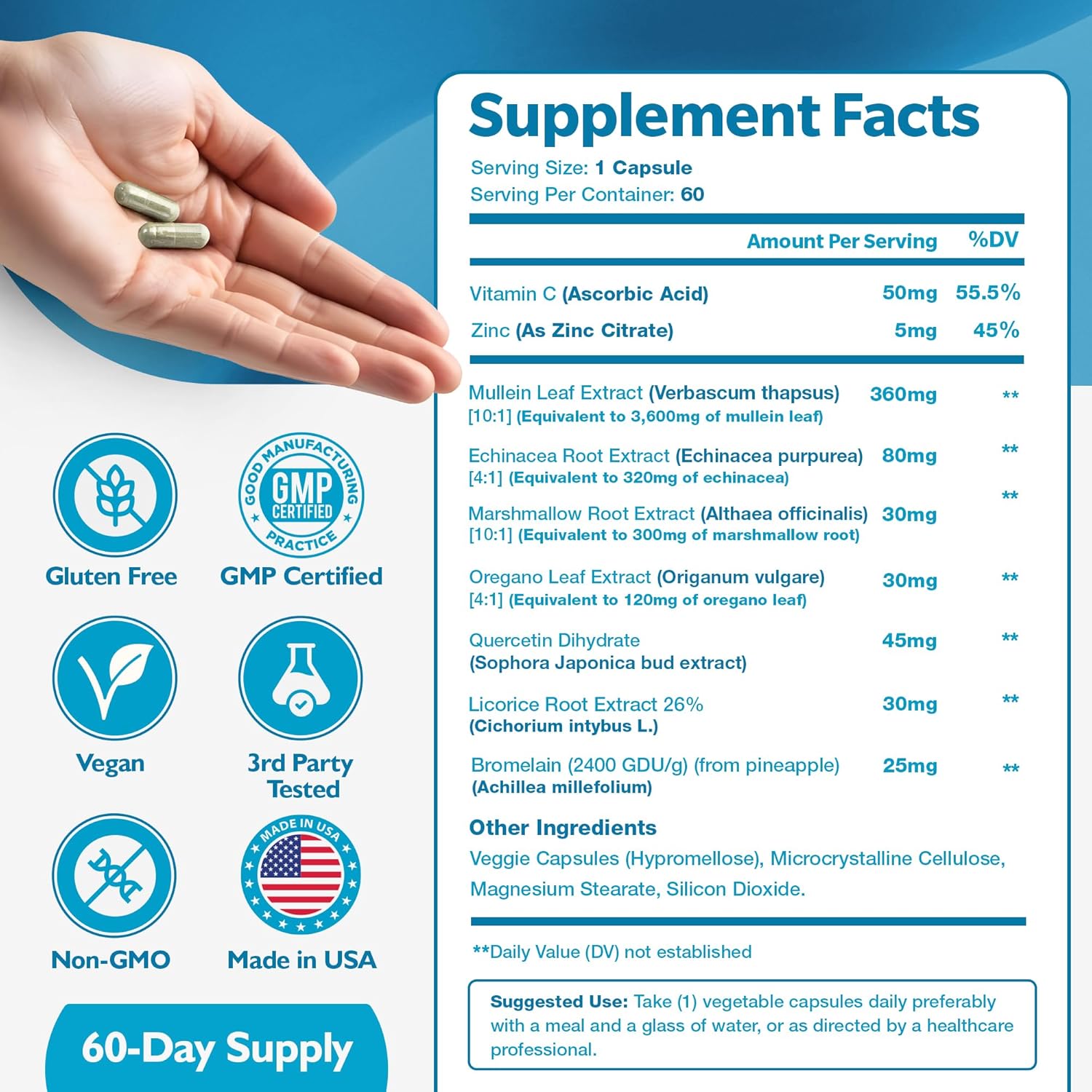 ეს არის ბუნებრივი მცენარეული დანამატი, რომელიც შექმნილია სასუნთქი სისტემის ჯანმრთელობის მხარდასაჭერად. 🍃 მისი მთავარი ინგრედიენტია ფარსმანდუკის (Mullein) ექსტრაქტი, რომელიც ცნობილია თავისი ამოსახველებელი და ანთების საწინააღმდეგო თვისებებით. 💨 პროდუქტი მიზნად ისახავს ფილტვების გაწმენდას დაგროვილი ლორწოსა და ტოქსინებისგან, რაც განსაკუთრებით სასარგებლოა მწეველებისა და დაბინძურებულ გარემოში მცხოვრები ადამიანებისთვის.