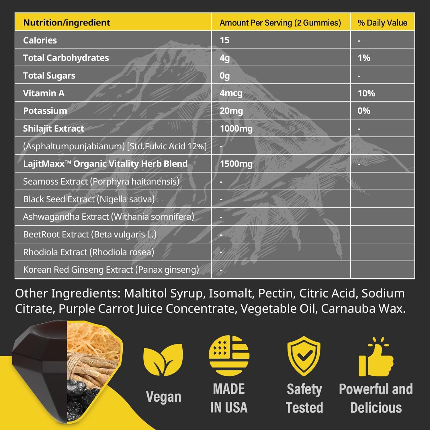 Quixiora მამაკაცის სასიცოცხლო ენერგიის შილაჯიტის 60 ჟელიბონი Men’s Ultimate Vitality Shilajit Gummies 60Gummies