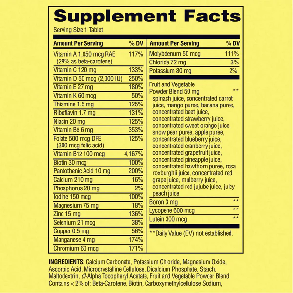 ეს მულტივიტამინი წარმოადგენს მარტივ და ეფექტურ გზას, რათა 50 წელს გადაცილებულმა მამაკაცებმა მიიღონ აუცილებელი ვიტამინები და მინერალები ჯანმრთელობისა და კეთილდღეობის შესანარჩუნებლად.