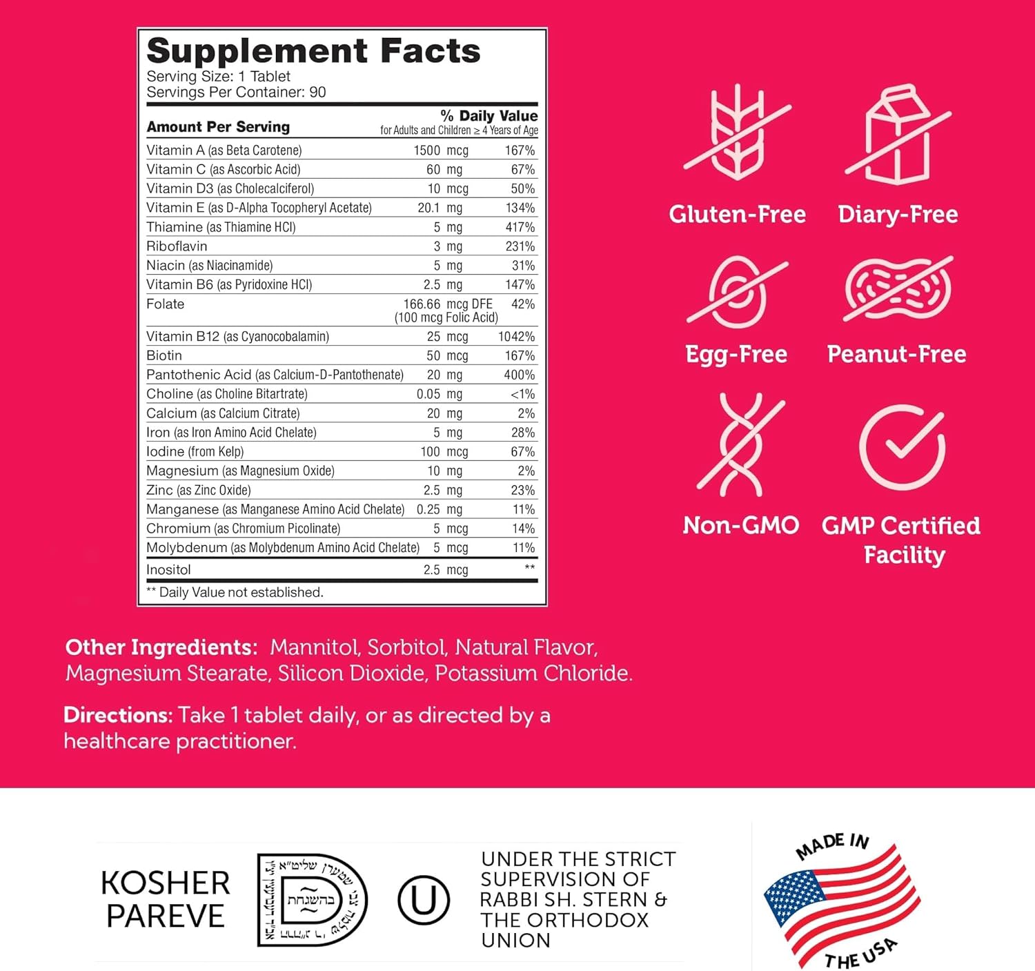 🍬 ეს 90-ტაბლეტიანი შეფუთვა უზრუნველყოფს აუცილებელი ვიტამინებისა და მინერალების ბალანსს ბავშვებისთვის მოსახერხებელი და გემრიელი ფორმით.